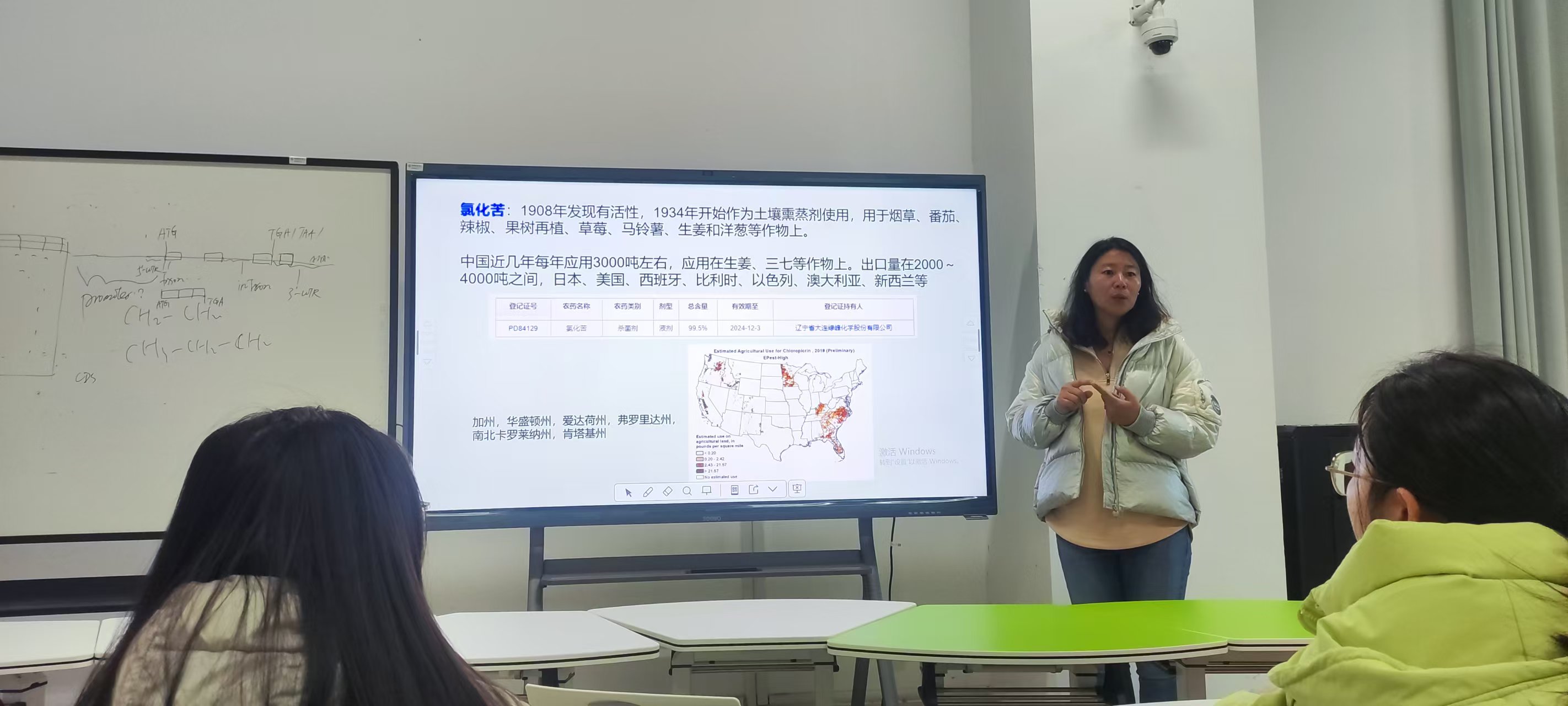 本网讯(通讯员 李祥 图片 张大琪)近日,我院特邀中国农业科学院植物保护研究所王秋霞研究员来校,为师生作题为《熏蒸剂研究进展》的专题学术报告。